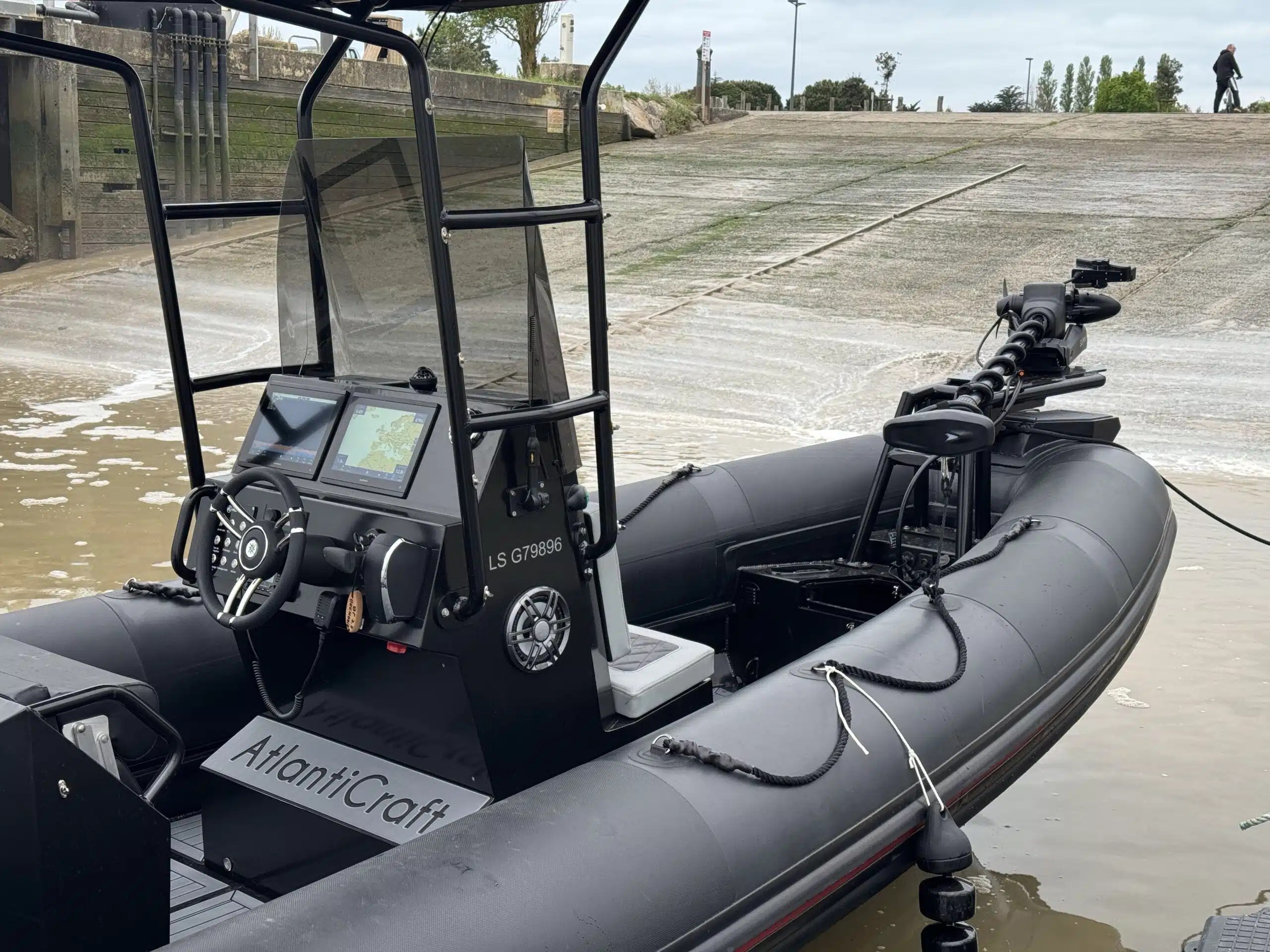 - V-shaped hull: Aluminum with anti-corrosion treatment and powder coating